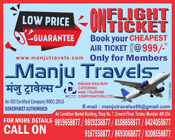 Good Service by Manju Travels the Staff is very helpful on toes for any queries, quick and efficient. This is the 2nd time i am using their services for flight tickets anf they are extremely good in their Job. Must use their services for any travel bookingd