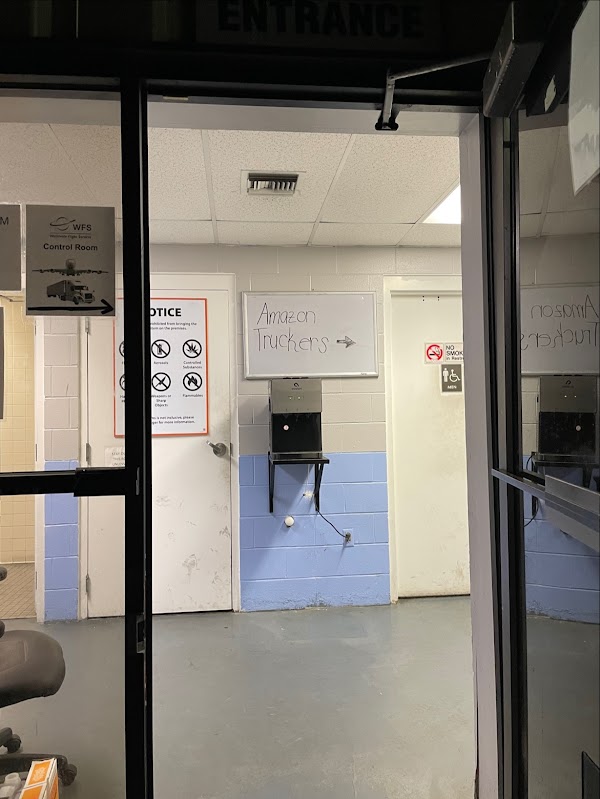 Amazon drivers go 2 Air Cargo (WFS) stay right. Go around back of building around right at the beginning of building. check in by glass door... go right in door... easy check in, quick unload.